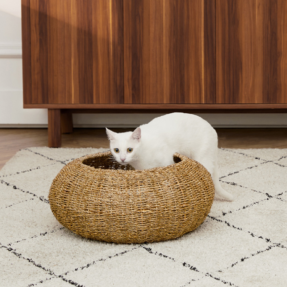 Teamson Pets 海草籐編織圓形穹頂寵物床(附棉墊)
